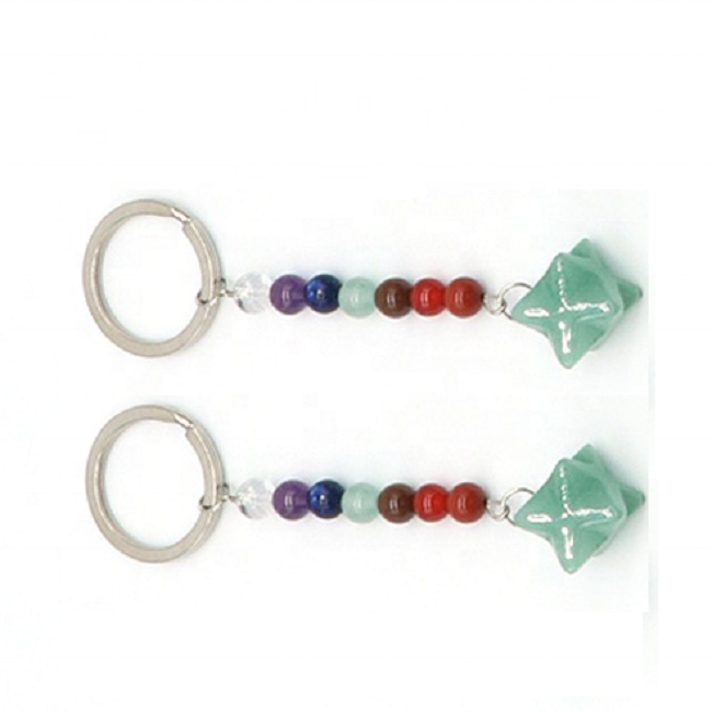natural stone Green aventurine Chakra Bead Merkaba star Healing wrapped Gemstone crystal Keychain healing Wholesaler