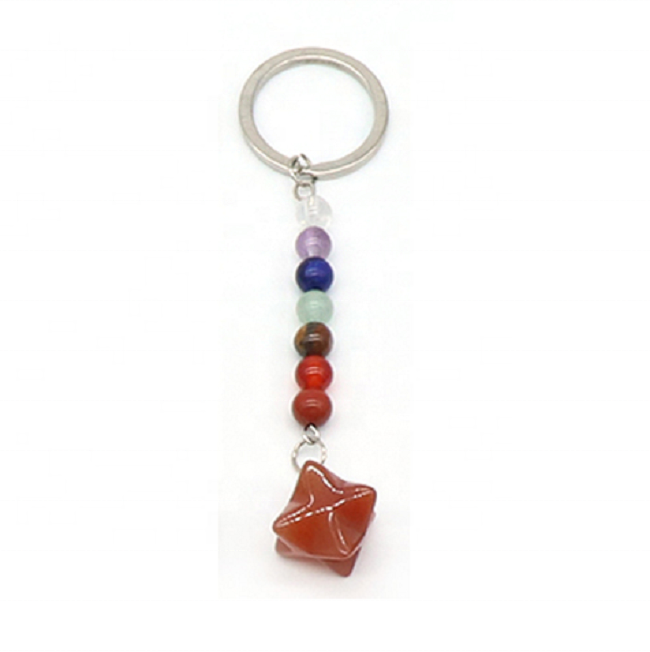natural stone Red carnelian Chakra Bead Merkaba star Healing wrapped Gemstone crystal Keychain healing Wholesaler