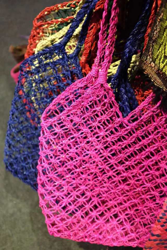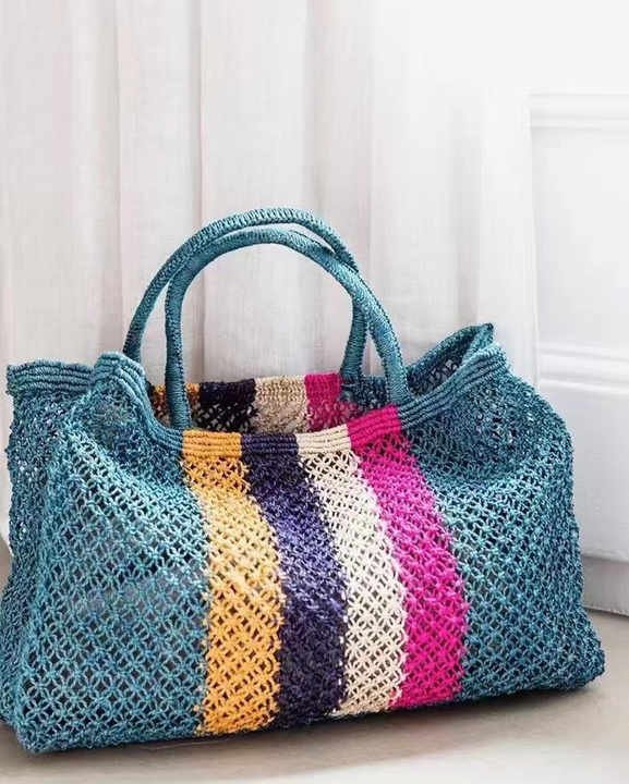 Nature Fiber Recycled Gift Bag with Transparent Net Bags Handmade Nature Fiber Weaved Shopping Package Bags