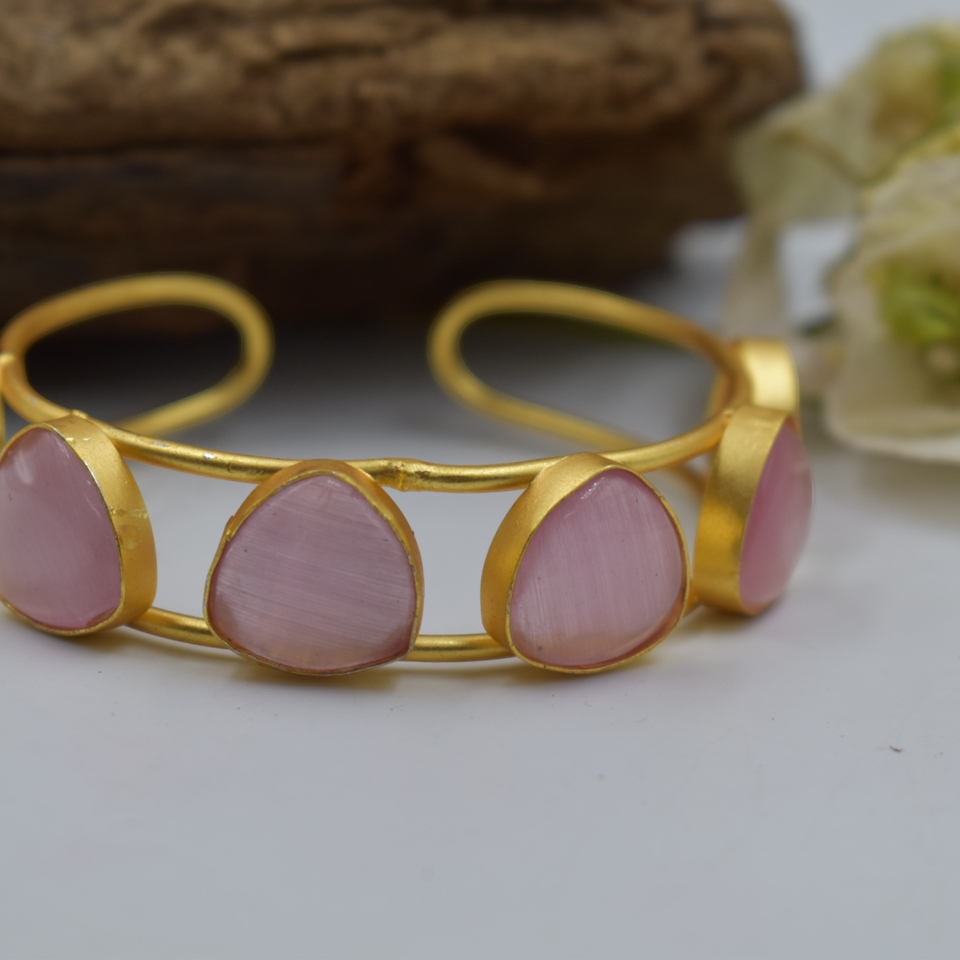 new arrival fashionable stylish jewellery designer handmade goldplated brass stone beads adjustable bangle for girls and women