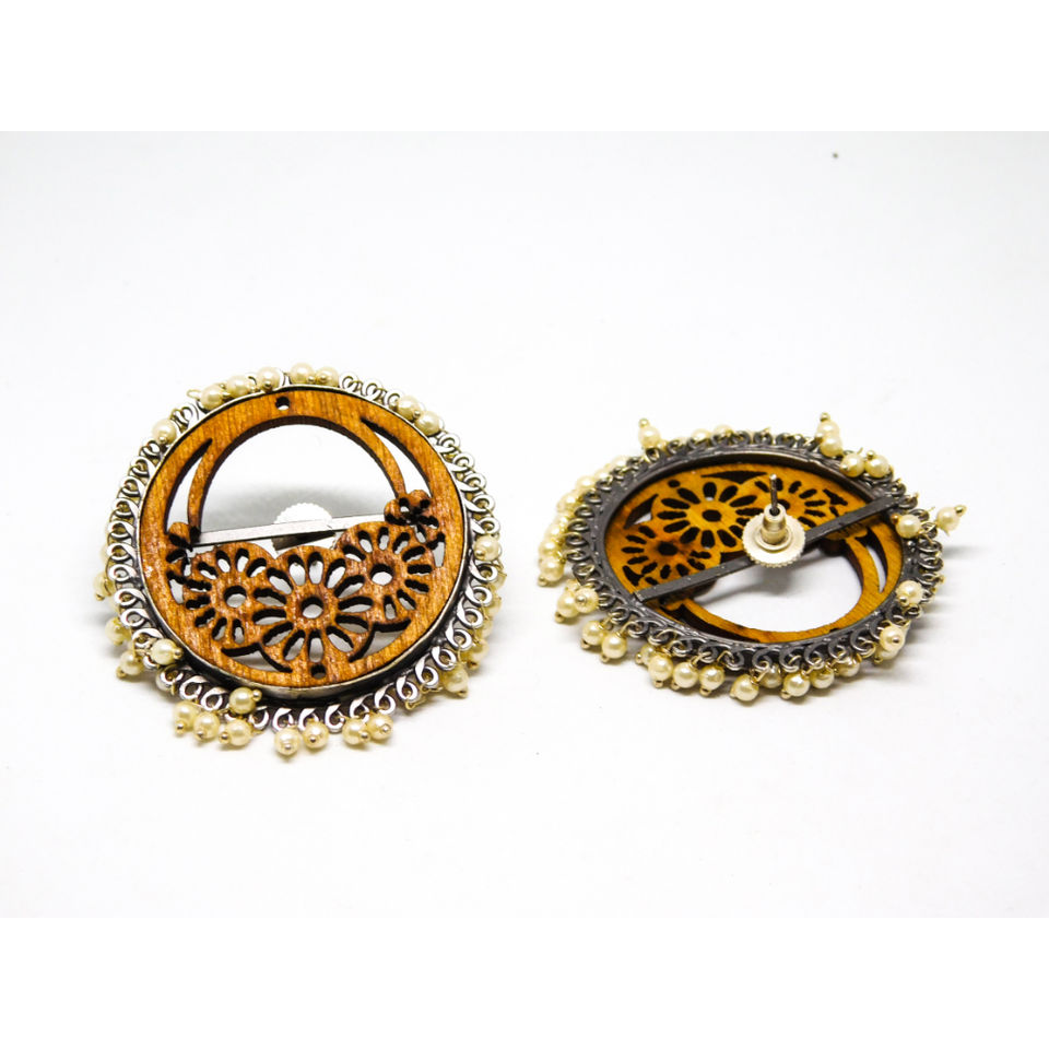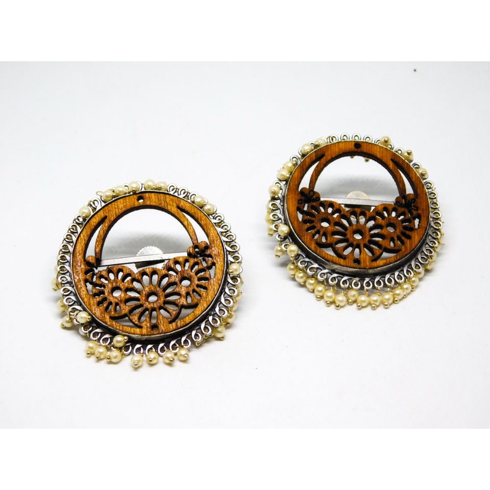 new arrival indian fashion designer silver look alike wooden round brass stud hoop earings for women and girls