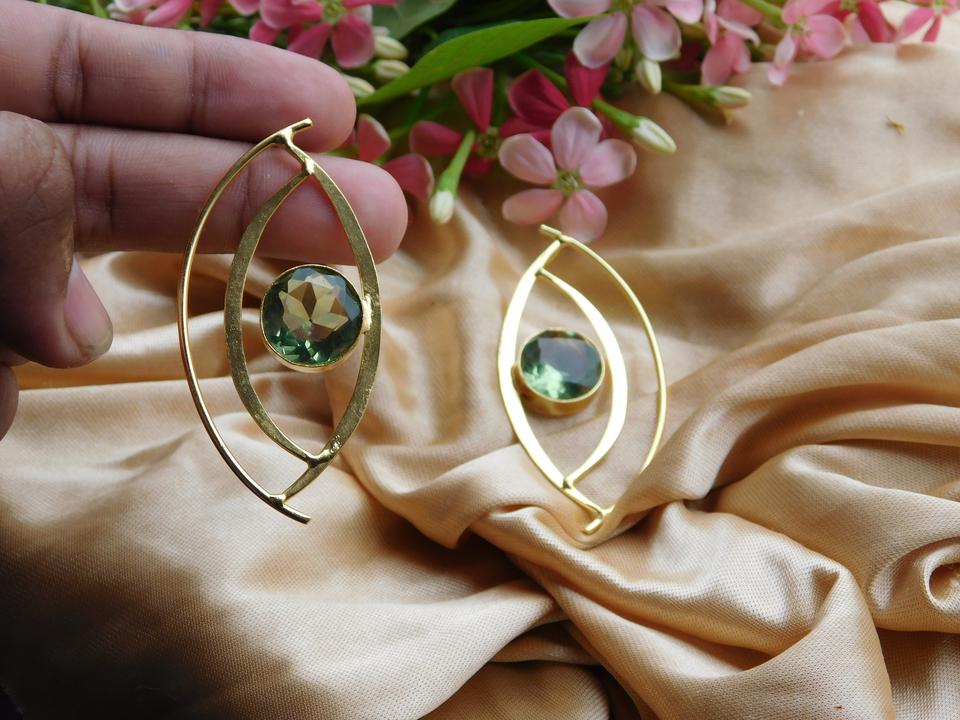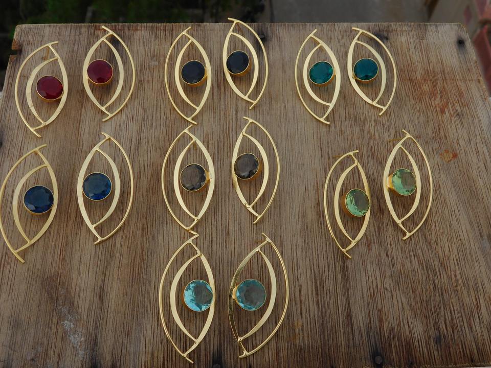 new designer latest trending handmade goldplated matte finish round stone stud hoop Brass Earrings for girls and women
