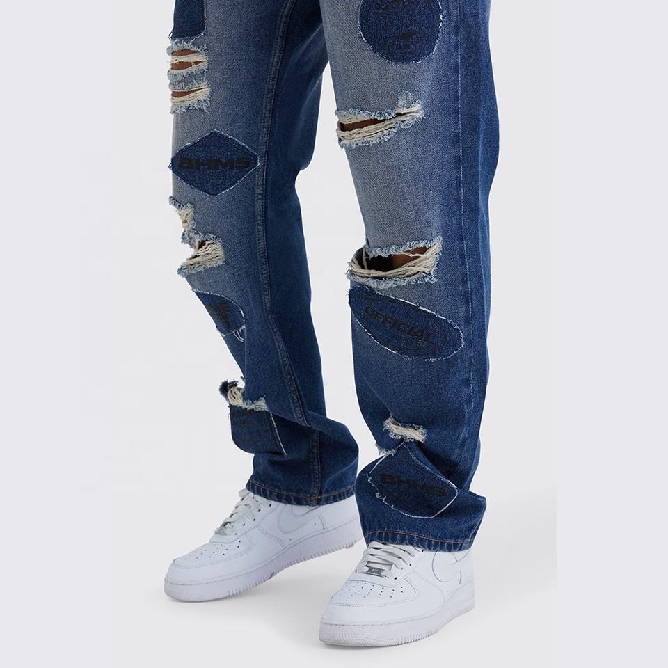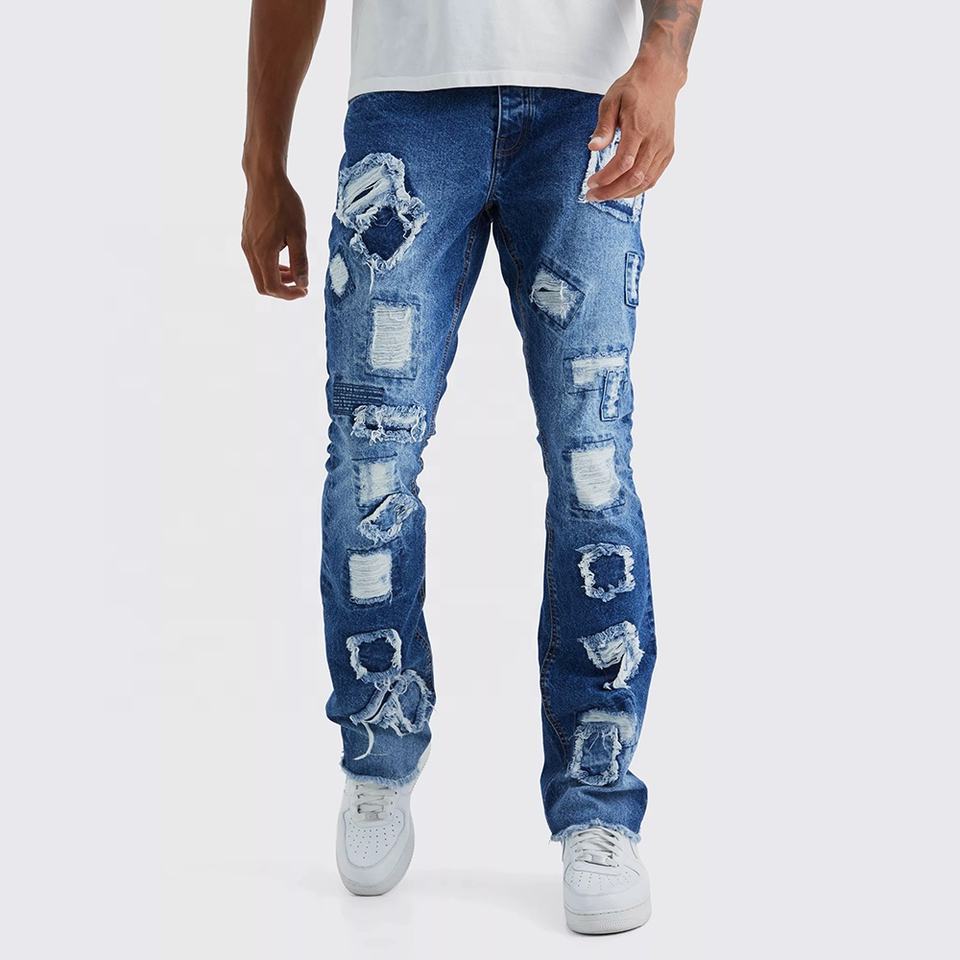 New Hip Hop Streetwear Fashion Style Mens Pant Custom Boot Cutt Straight Jeans High Quality 100% Cotton Denim