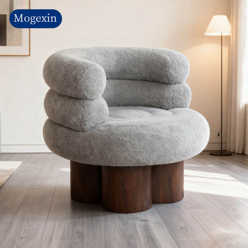 Nordic Teddy Solid Wood French Design Armchair Living Room Sofa Chair Beige Recliner Durable Villa Workshop