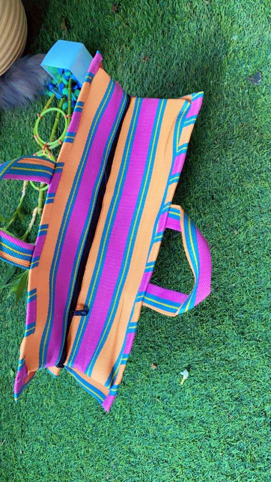 Eco-Friendly Reusable Nylon Mini Woven PP Shopping Bags Sustainable Recycled Polypropylene Plastic with Striped Design