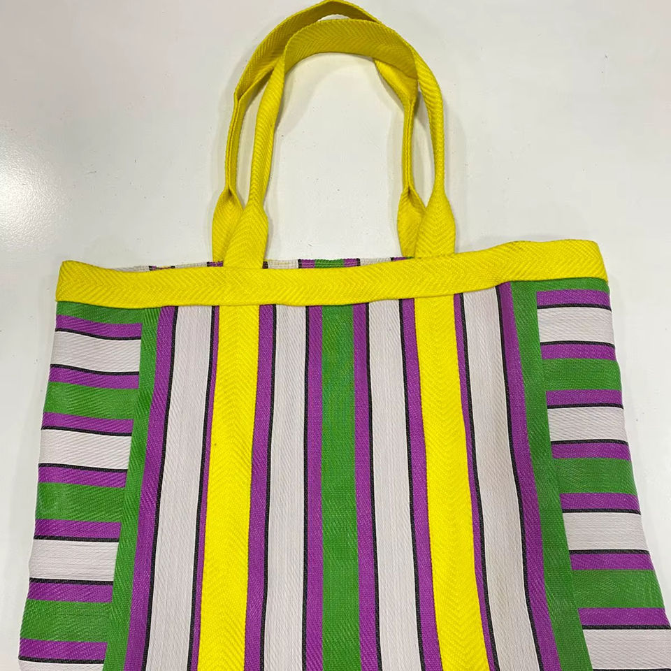 nylon recycled Woven Stripes and Checks Eco-Friendly Zipper Plastic Woven Striped Shopping Bag Handloom Recycled Beach Bags
