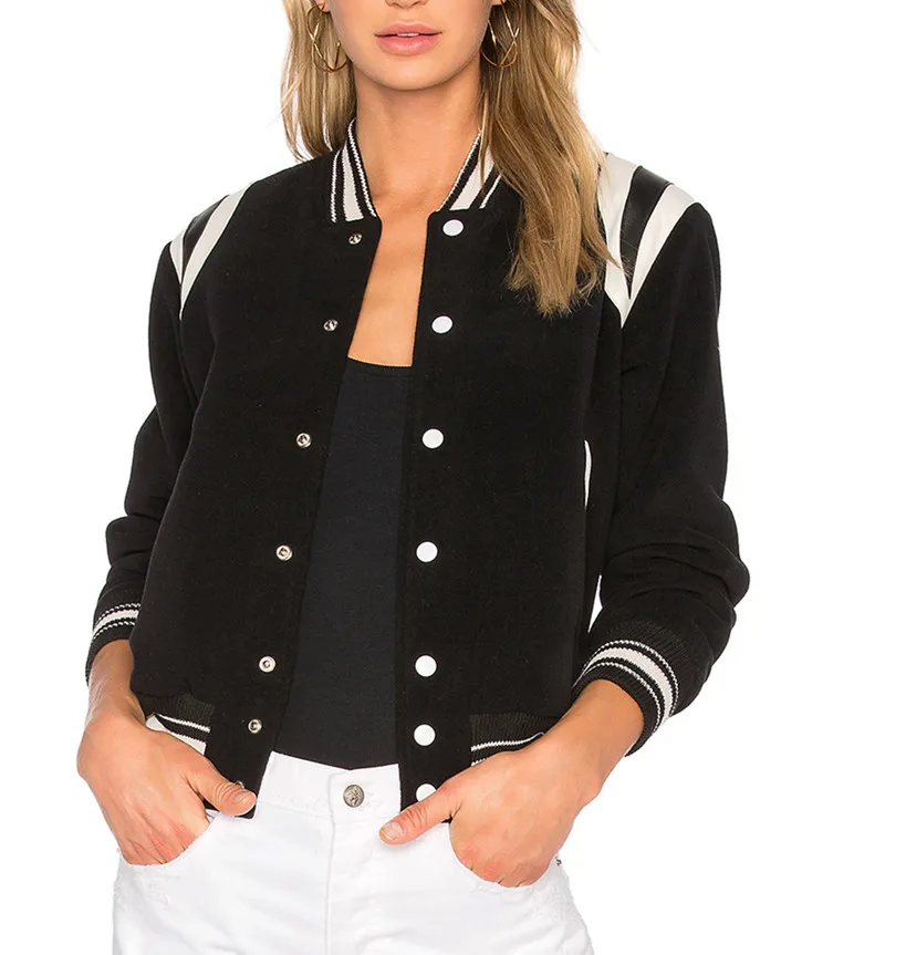OEM Custom Oversize Towel Letters Applique Woven Baseball Varsity Jacket Women Windproof Quick Dry Detachable Sleeves