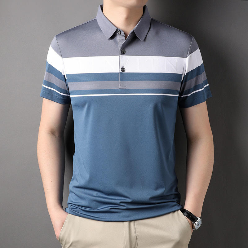 Oem Customized logo Design Mens Summertime Tshirt Straight Summer Sleeve Yarn Dyed Striped Lapel Business commuter