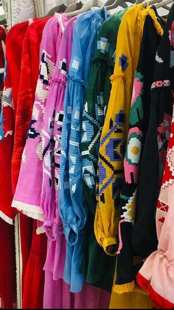 off Shoulder Linen Oversized with Ruffle and Embroidery Balloon Sleeve Fashion Bohemian Gown Ukrainian Mini Dress