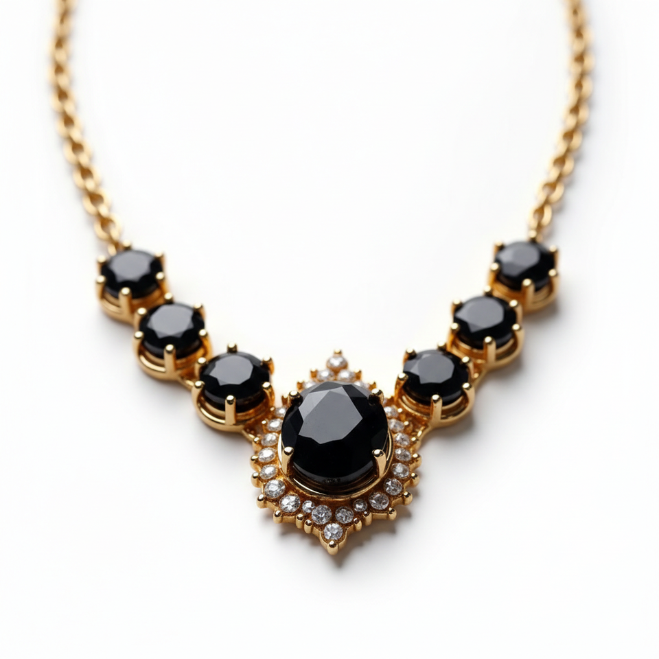 Product name:Black Onyx Pendant Necklace, 16 Inch Round with CZ