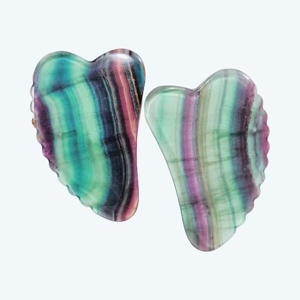 Name:heart shaped colorful natural jade fluorite gua sha board