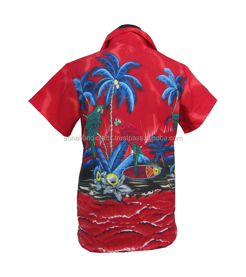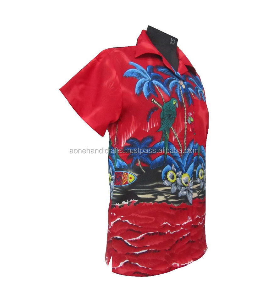 parrot print red color Man's designer beach ware Hawaiian shirt new arrival shirt for mens hawaiian style printing shirts