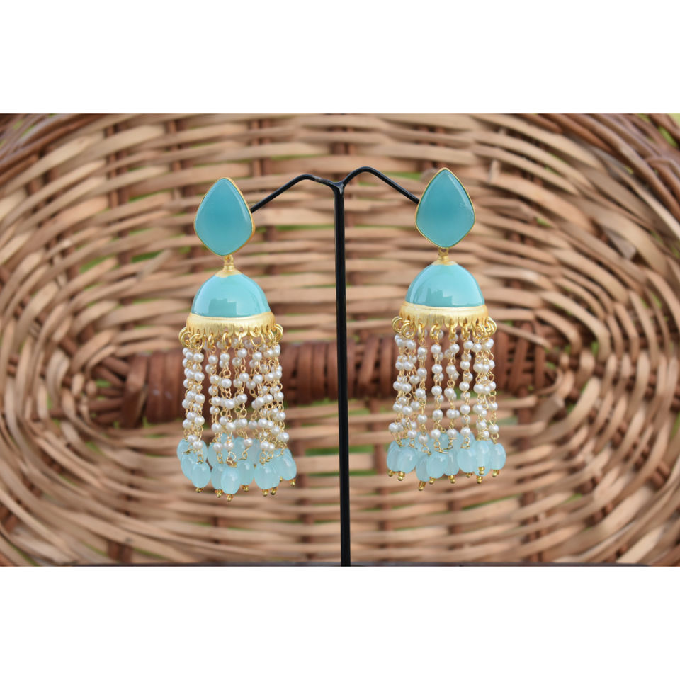 partywear brass traditional golden mattefinishing meenakari long beads jhumki with stone stud hoop earing for girls and women
