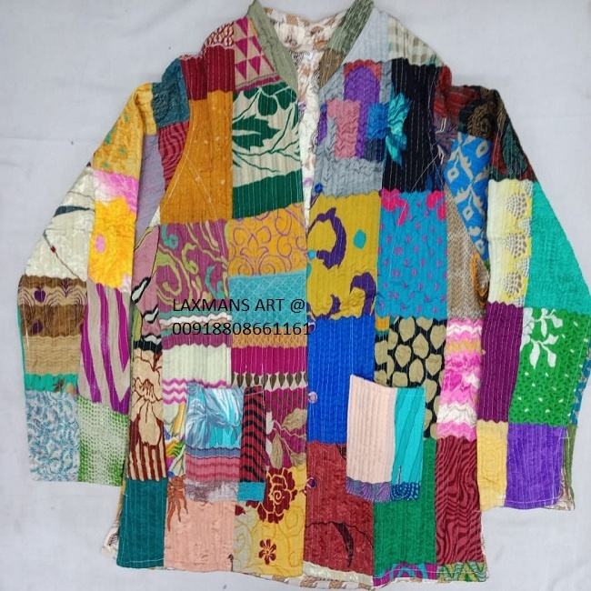 Patchwork Kantha Jacket Cotton Winter Jackets From India Kantha Work Jackets Bohemian Cotton Jackets for Ladies