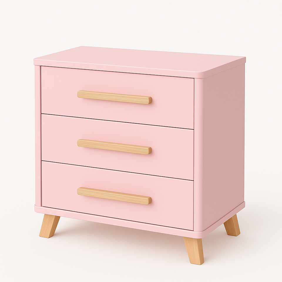 pink 3-Drawer Wood Storage Chest 256 with Handles for Bedroom or Bed Use in Dining or Living Room