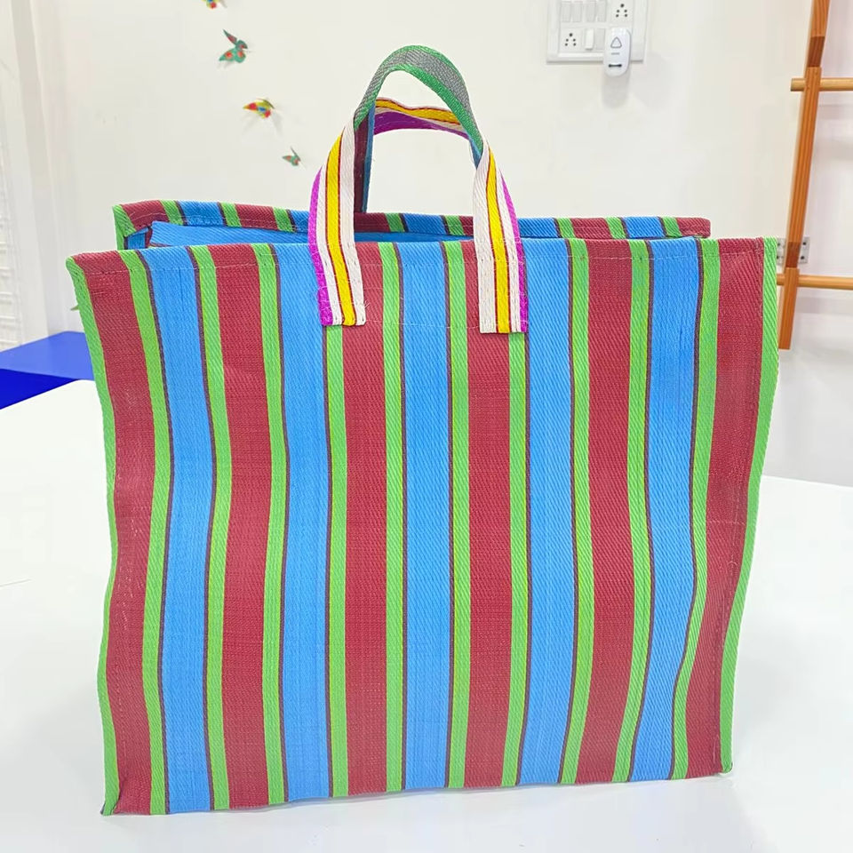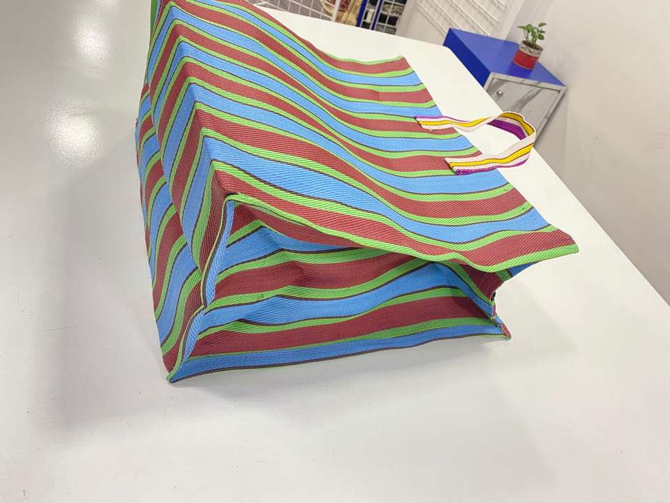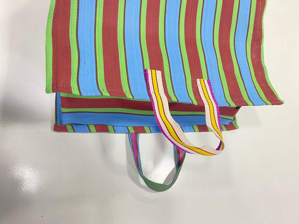 Eco-Friendly Reusable Nylon Shopping Bag with RPET Zipper Striped Handloom Woven Recycled Plastic Beach Bags Made in India