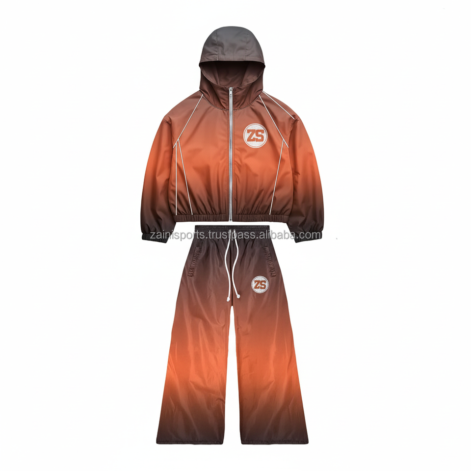 plus size Lightweight Windbreaker Set 220GSM High Density Polyester Fabric Fade Brown Black Shade Custom Logo Windbreaker Set