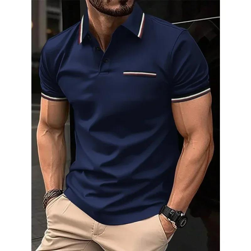 Summer New Men's for Polo T-Shirt High Quality Casual Fashion Short Sleeve Top Printed Knitted Fabric High Collar
