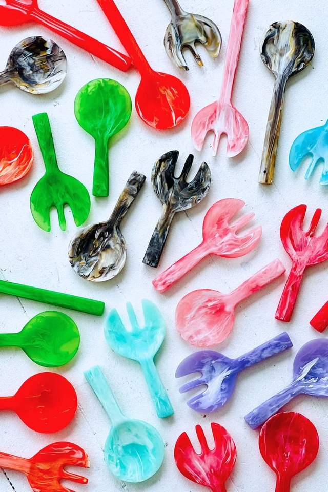 premium Quality Resin Salad Server Set Bubble Handle Epoxy Kitchen Tableware Food Tossing Catering Restaurant Serving Tool Item