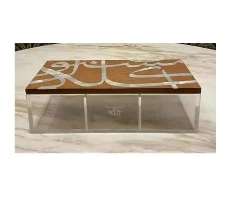 premium quality Gift Box for Ramadan, Eid, Home Handcrafted Wooden Edge Acrylic Date Box with Mother of Pearl Inlay Lid Custom