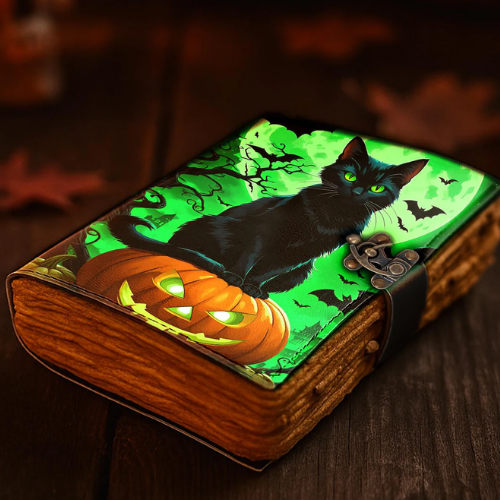 printed horror Black Cat Halloween Journal Witchy Pumpkin spell book