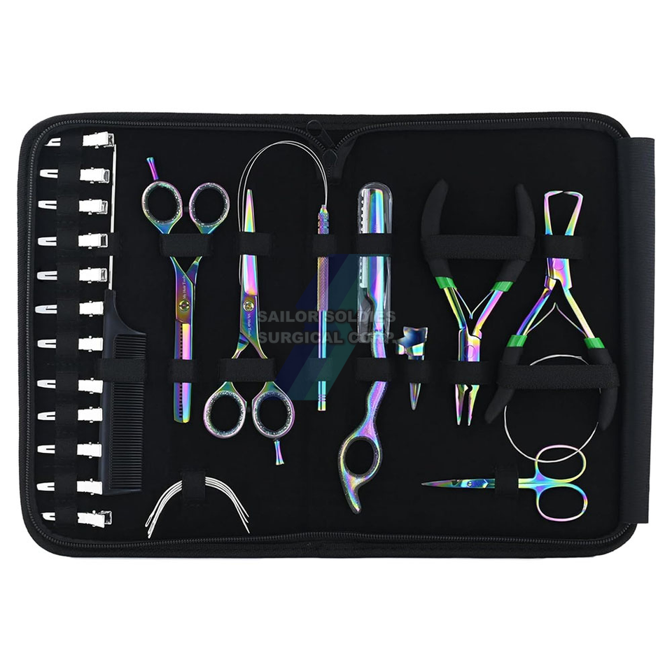 Private Label Hair Extension Tool Kit Set Professional Hair Pliers With Micro Beads, Alligator Clips, Scissors Best Selling Kit