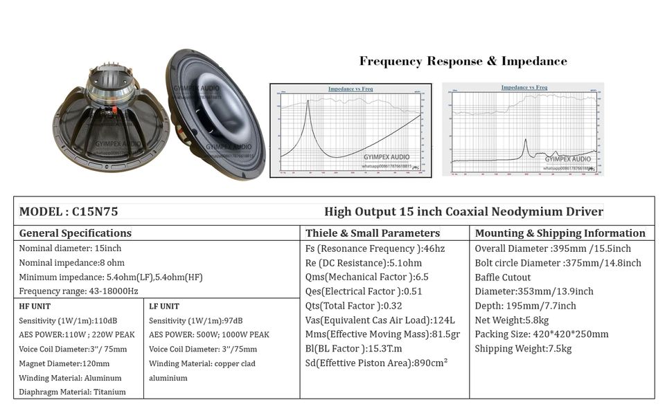 Type:pro audio driver 15 Inch Coaxial Speaker manufacturer