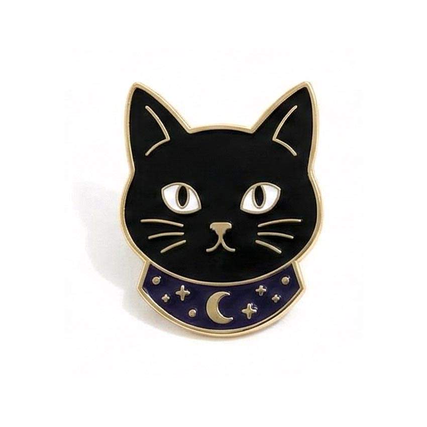 promotional enamel lapel pin badge wholesale custom tarot black cat pin