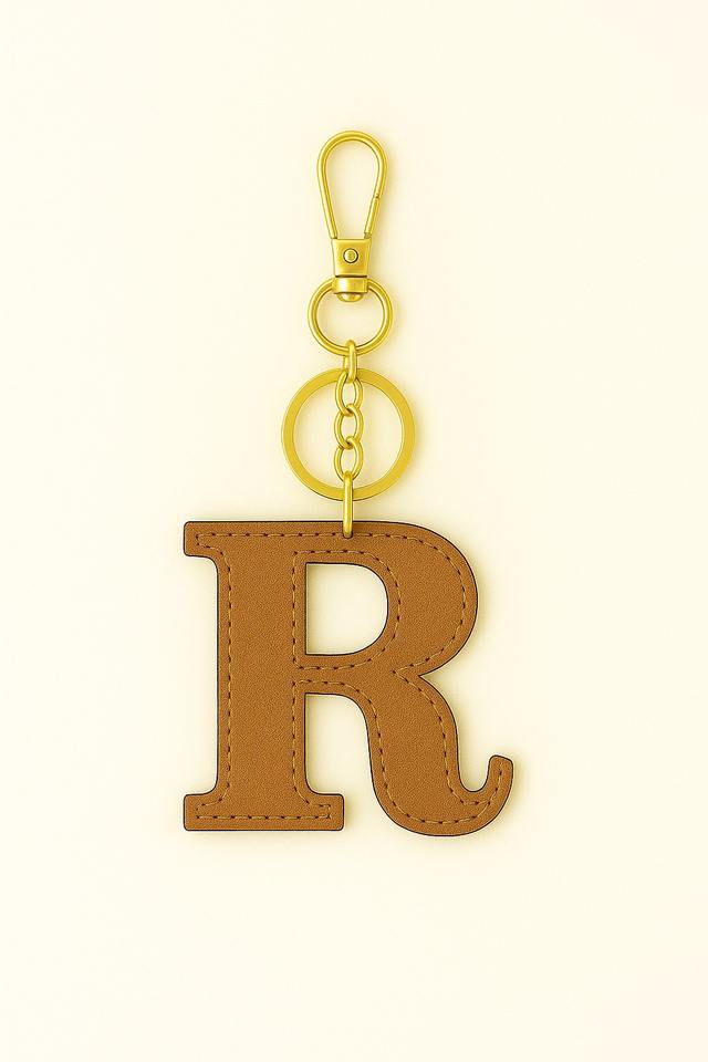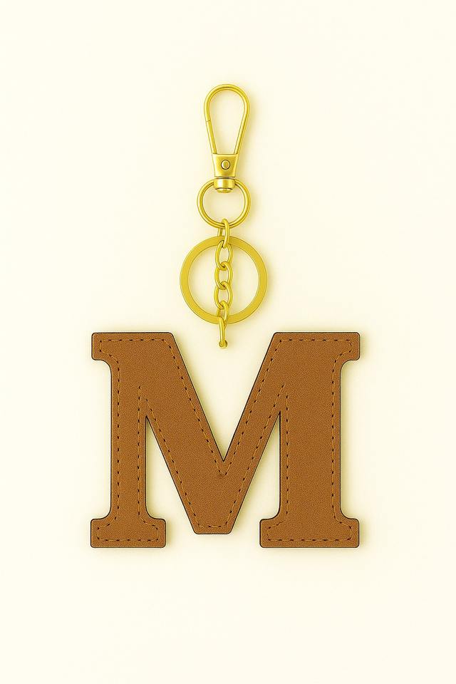 pure Leather Alphabet Key Fob Personalized Puffy Letter Keychain Custom Letter Charms with Metal Ring Ring for Phone or Bag