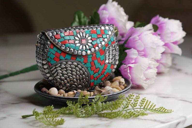 Metal Crafts Handicrafts Round Hand Handbag / Clutch Bag /ladies Purse Mosaic Metal Stone Summer Beach 2022 Hot Selling Women