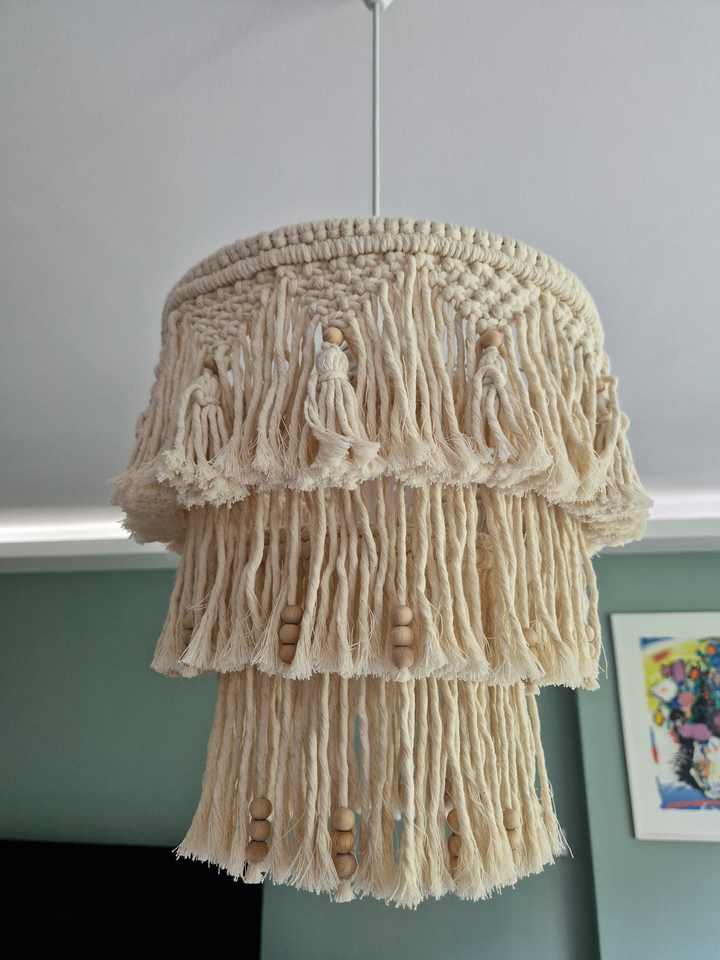 rame lamp lighting, boho fringe chandelier lampshade lantern ceiling decor, terrace hanging