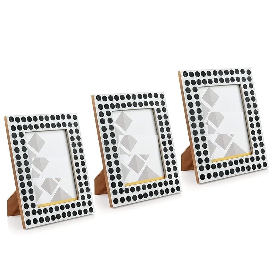 Home Photo Frame Polka Dot Design-Portrait Landscape Orientation 8x6 Black Painting Vintage Picture Frame wall mount table top
