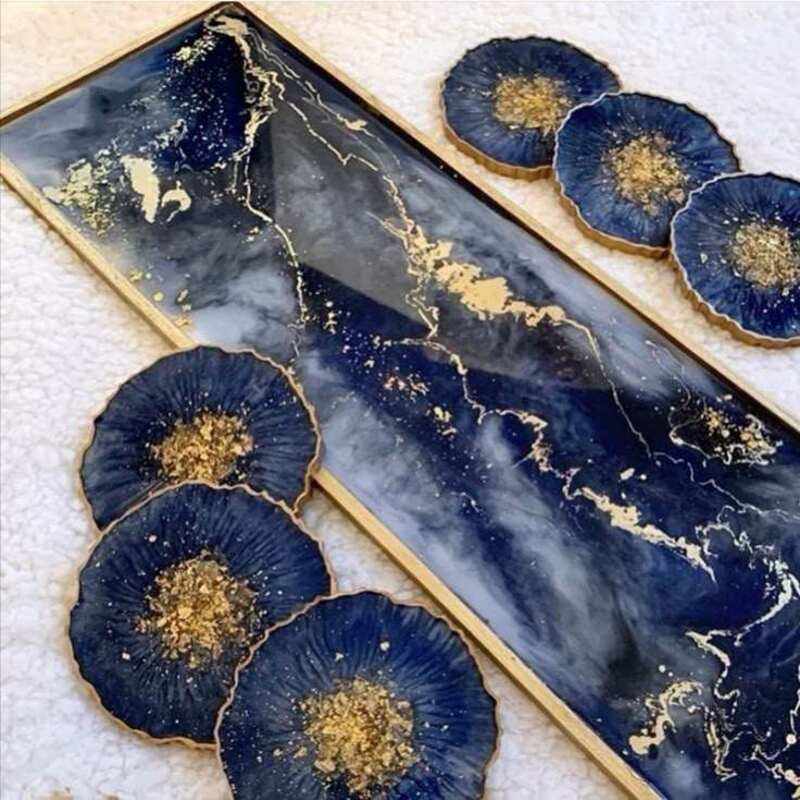 resin coaster set with floral metallic accents epoxy mats ideal for stylish dining table living room and gifting purposes