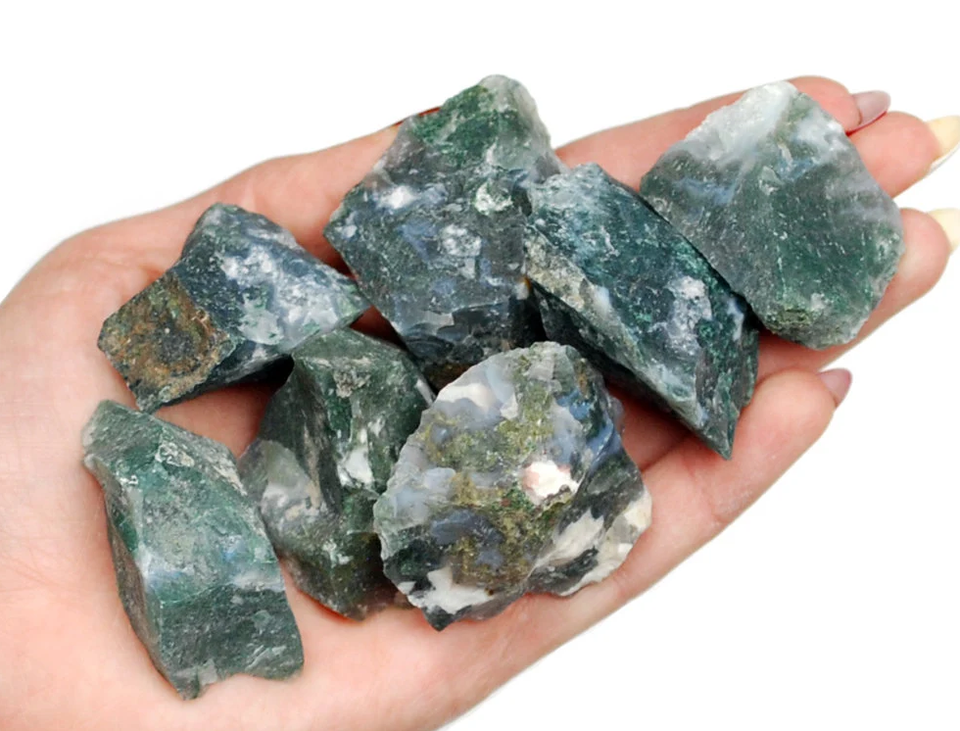 Rough Stone Moss Agate Raw Rough Tumbled for Natural Unpolished Rough Tumbled Stones Gemstone Crystal Natural