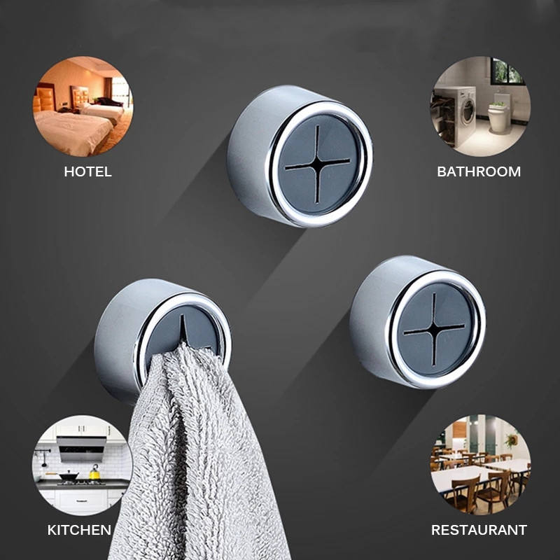 round Adhesive Wall Mount Hook Plastic Towel Holder for Bathroom Kitchen Home-Dish Towel Rack