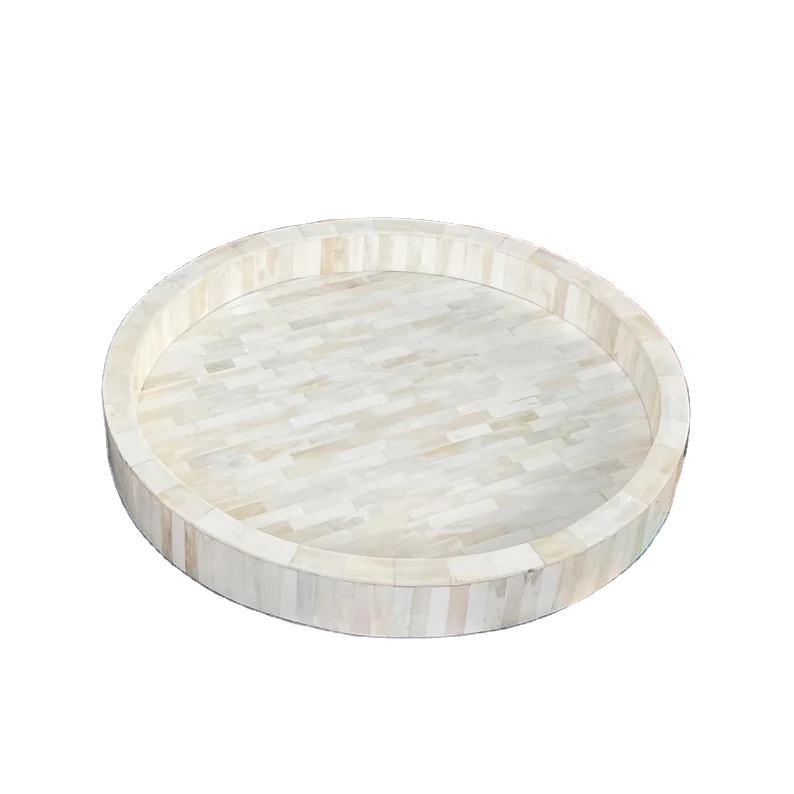 Modern Round Bone Inlay High Quality Decorative Serving Tray with Custom Wood Design for Home Hotel & Restaurant Use