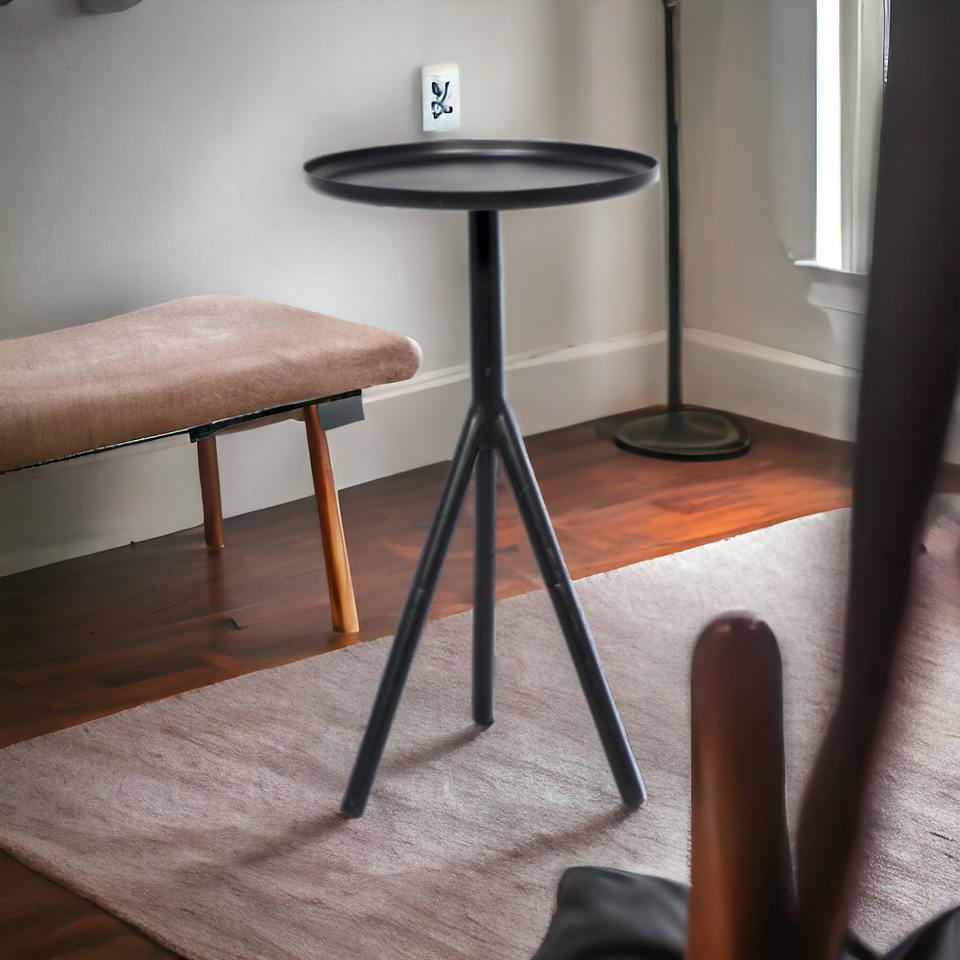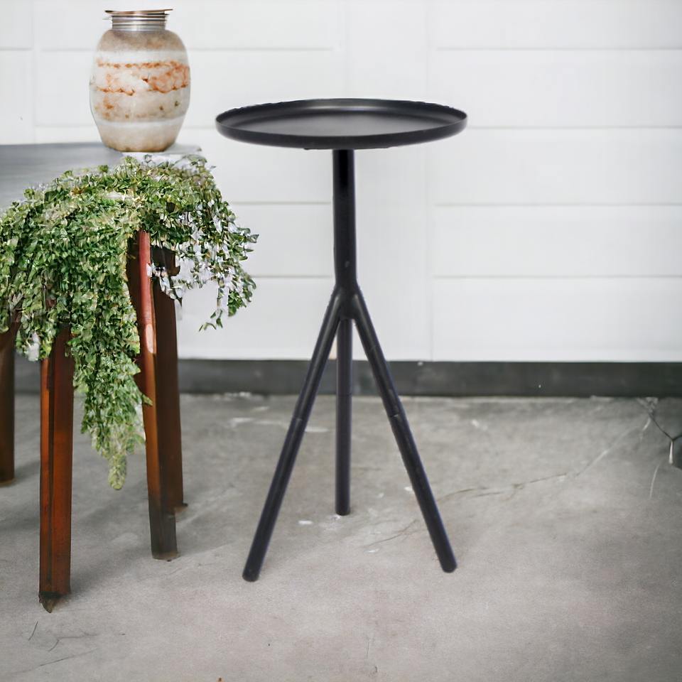 Round Custom Style Coffee Table with Black Metal Storage Iron Tray for Indoor and Outdoor Use for Bar Application