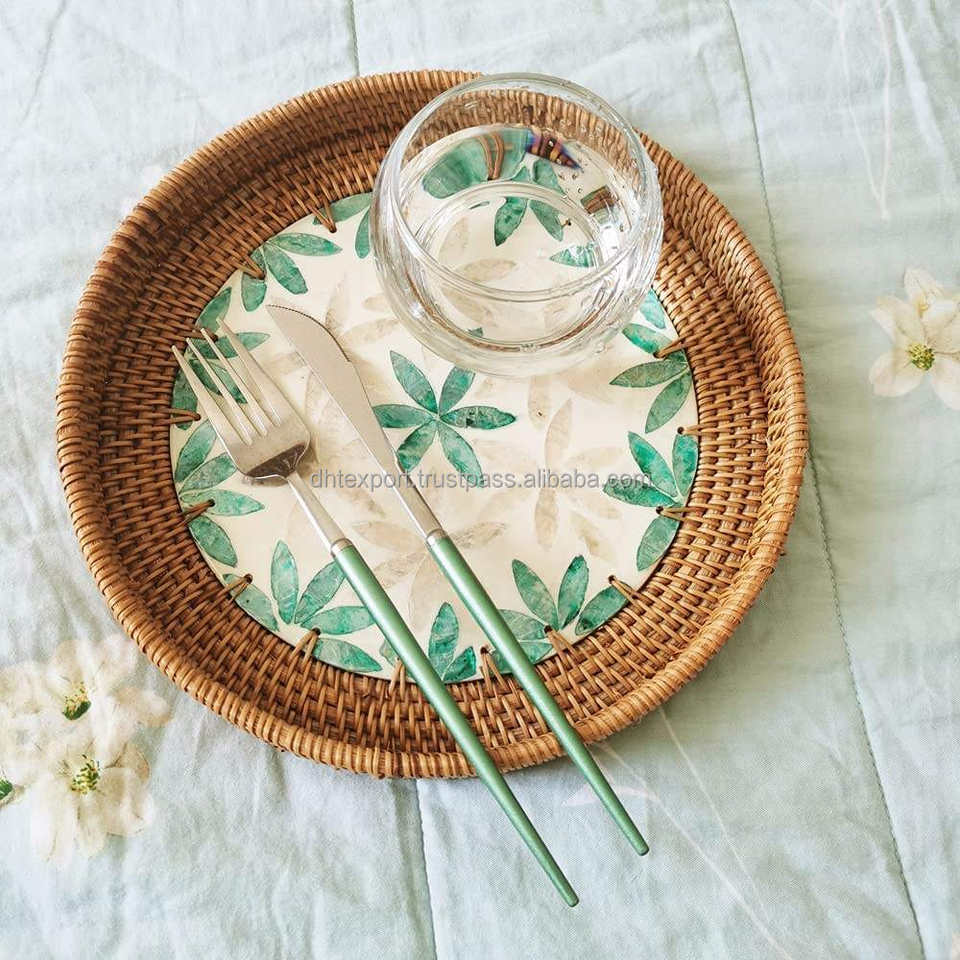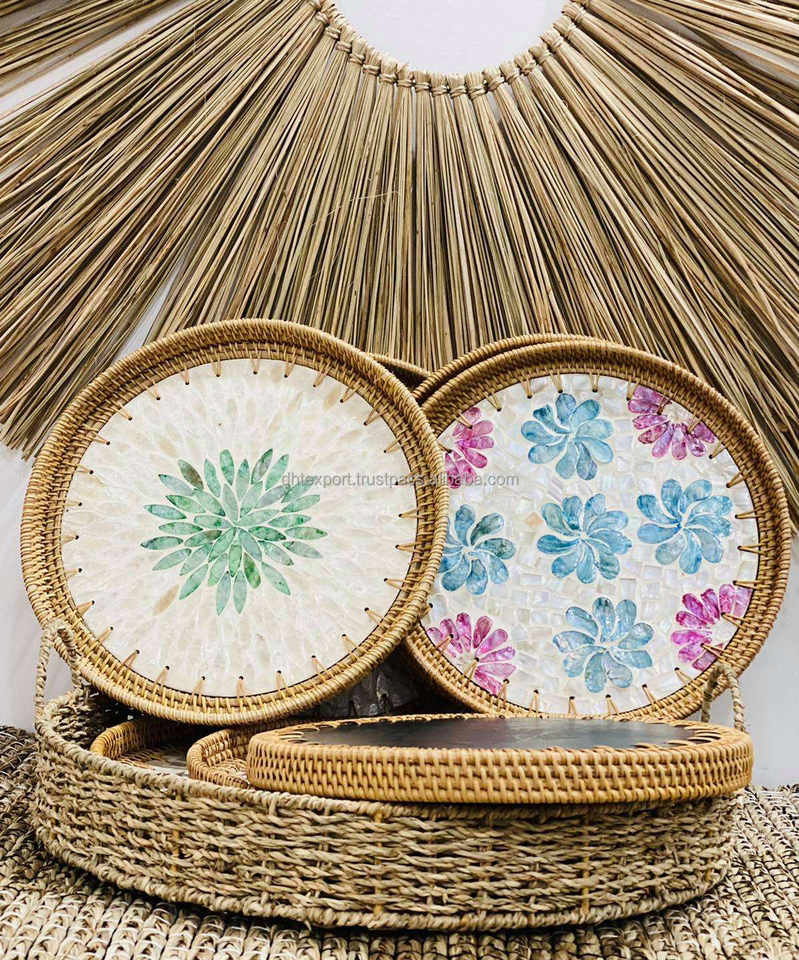round Handmade Serving Tray Mother of Pearl Lacquer Coffee Table for Home Decor Elegant and Unique Serving Tray DHT handicraft