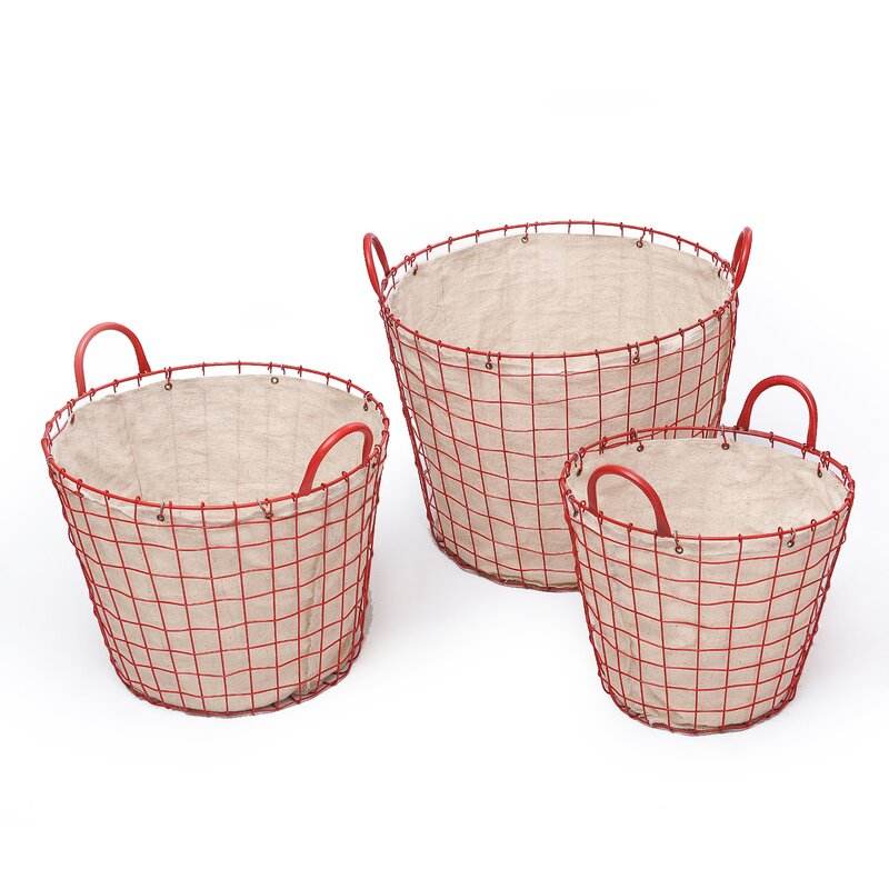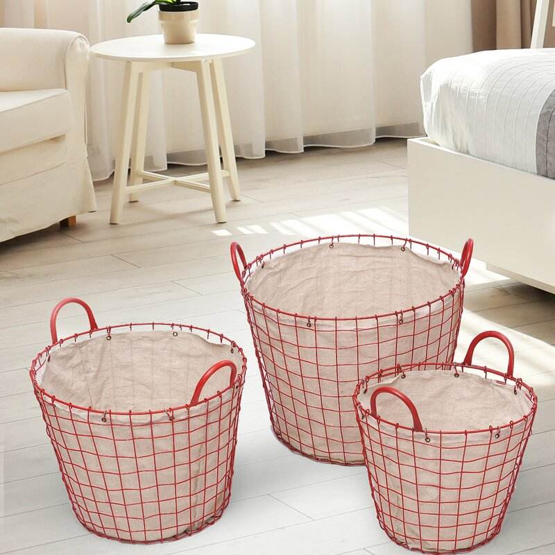 round wire hamper red yellow metal laundry basket with handle