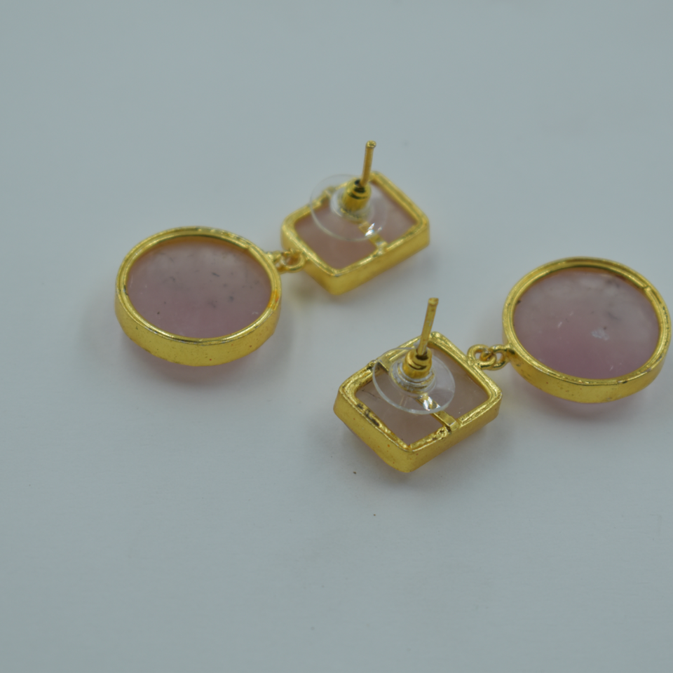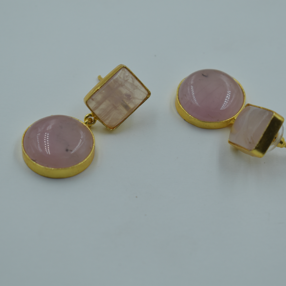 semi precious stone goldplated brass earing wholesale 18k gold plated rose quartz semi precious stone stud earrings for women