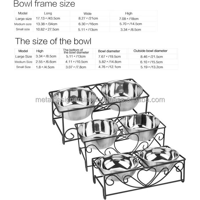 Set of 3 Iron Wire Black Heart Elevated Stainless Steel Double Diner Feeding Station With 2 Bowls Cats and Dogs Feeders