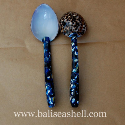 shell tiger spoon Natural Size 16x4,5 cm SEASHELL JEWELRY Spoon and Fork Set Tiger Motif Art Capiar Shell Dinnerware