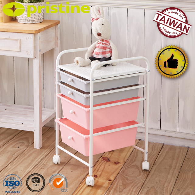 MIT Home Trolley 4-Tier Plastic Storage Drawer Cart Metal Kitchen Tool Organization Home Storage Solution Bathroom Living Room