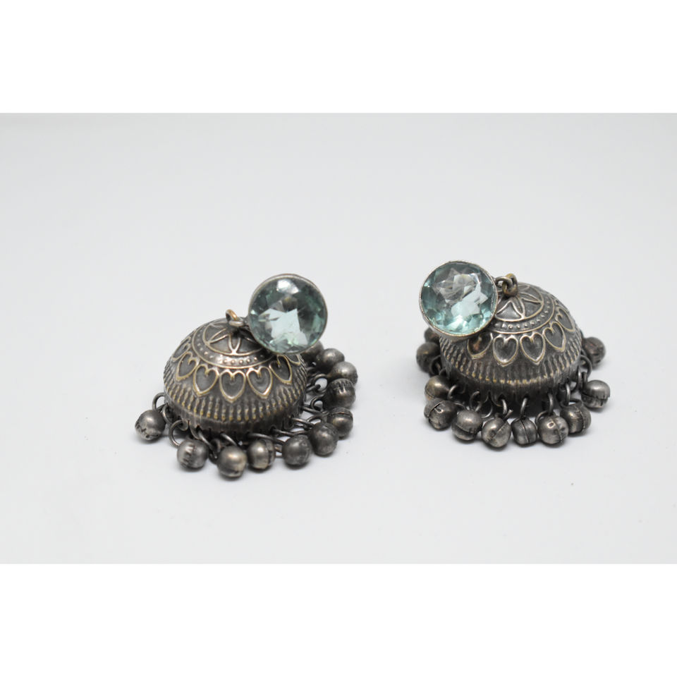 silver look alike indian stylish latest fashion wholesale brass stone stud hoop jhumka ghungro earings for women and girls