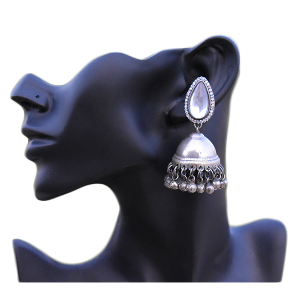 silver look alike indian stylish wholesale latest fashion brass stone stud hoop jhumka earings for women and girls