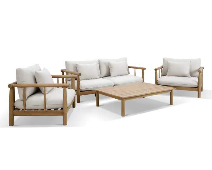 Modern Design Solid Teak Wood Sofa Set for Indoor/Outdoor & Hotel Use with UV Resistant Sunproof Cushions