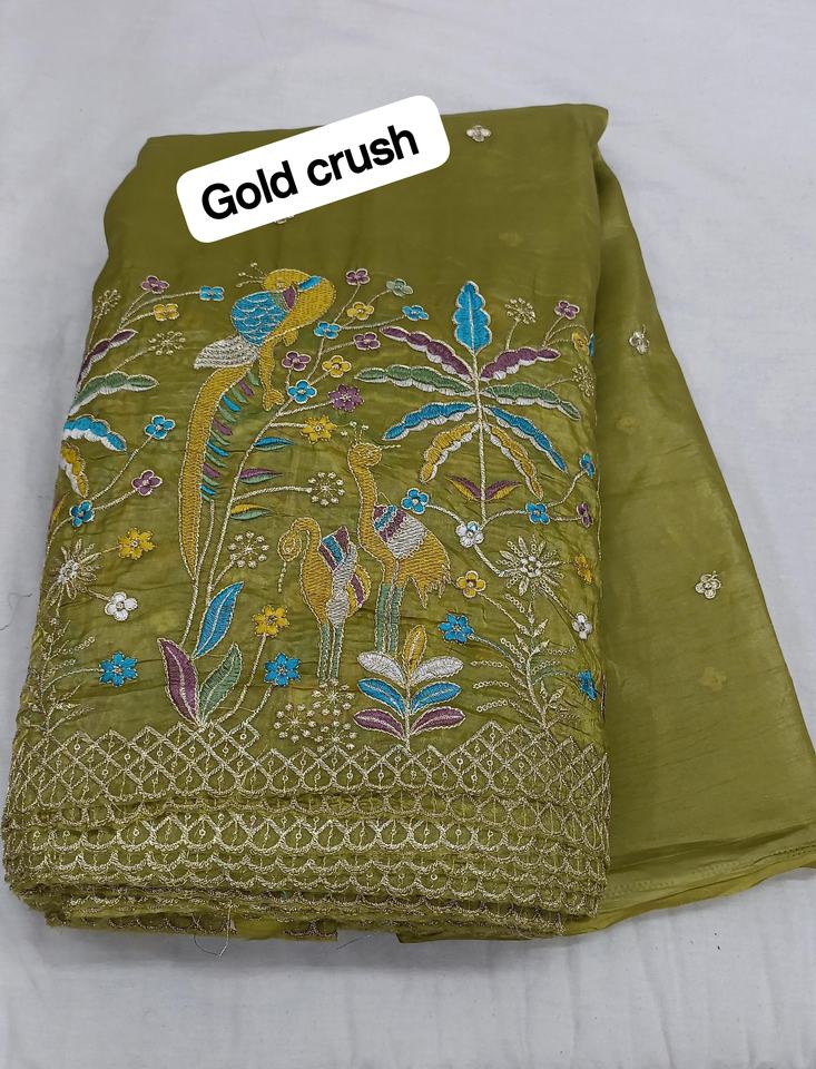 soft gold crush fabric make to fancy dress , lehenga , kurti , material best quality fabric