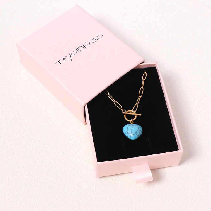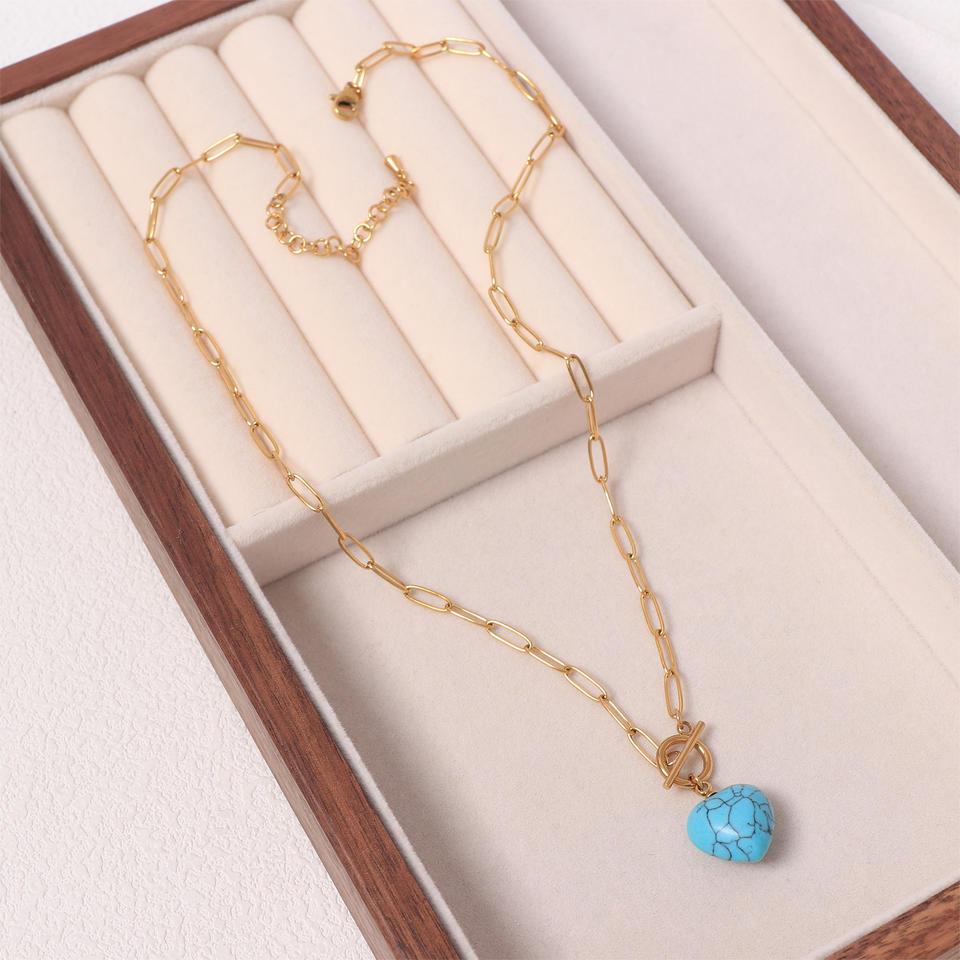 Spot Goods Unisex OEM/OEM Custom Stainless Steel Gold Silver Plating Trendy Agate Heart Shape Pendant Necklace Box Packaging