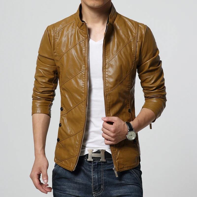 Men's Casual Genuine Leather Jacket Red Large Size Winter Collection Waterproof Eco-Friendly Windproof Wool Fabric Material Fur