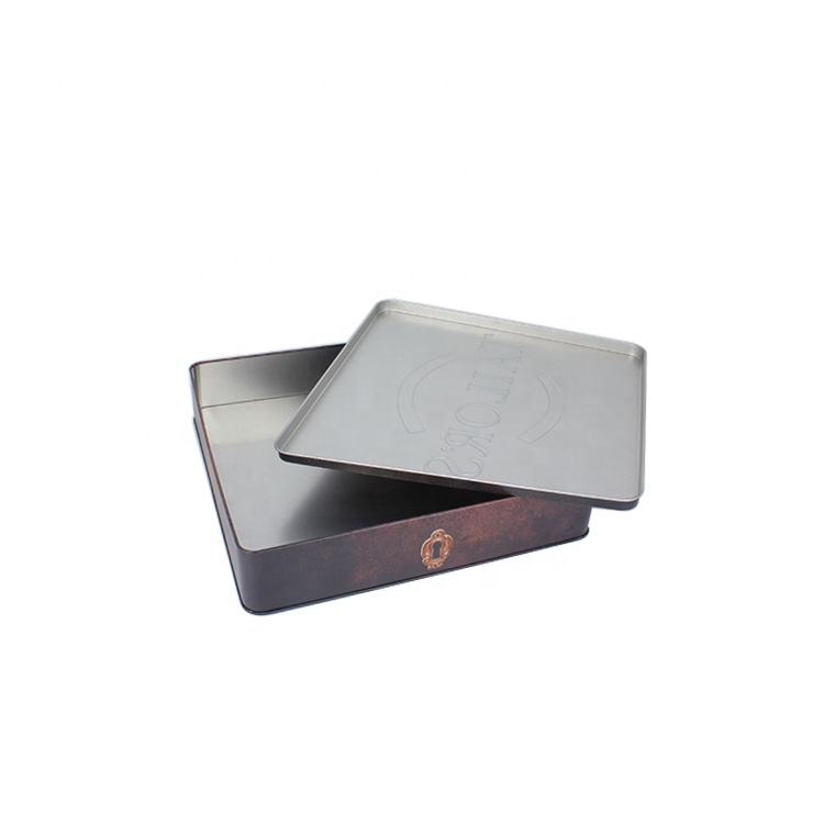 square Gift Storage Tin Box Cookies Packaging Tin Metal Box Custom Embossed Brand Candy Metal Tin Can Sweets Package case